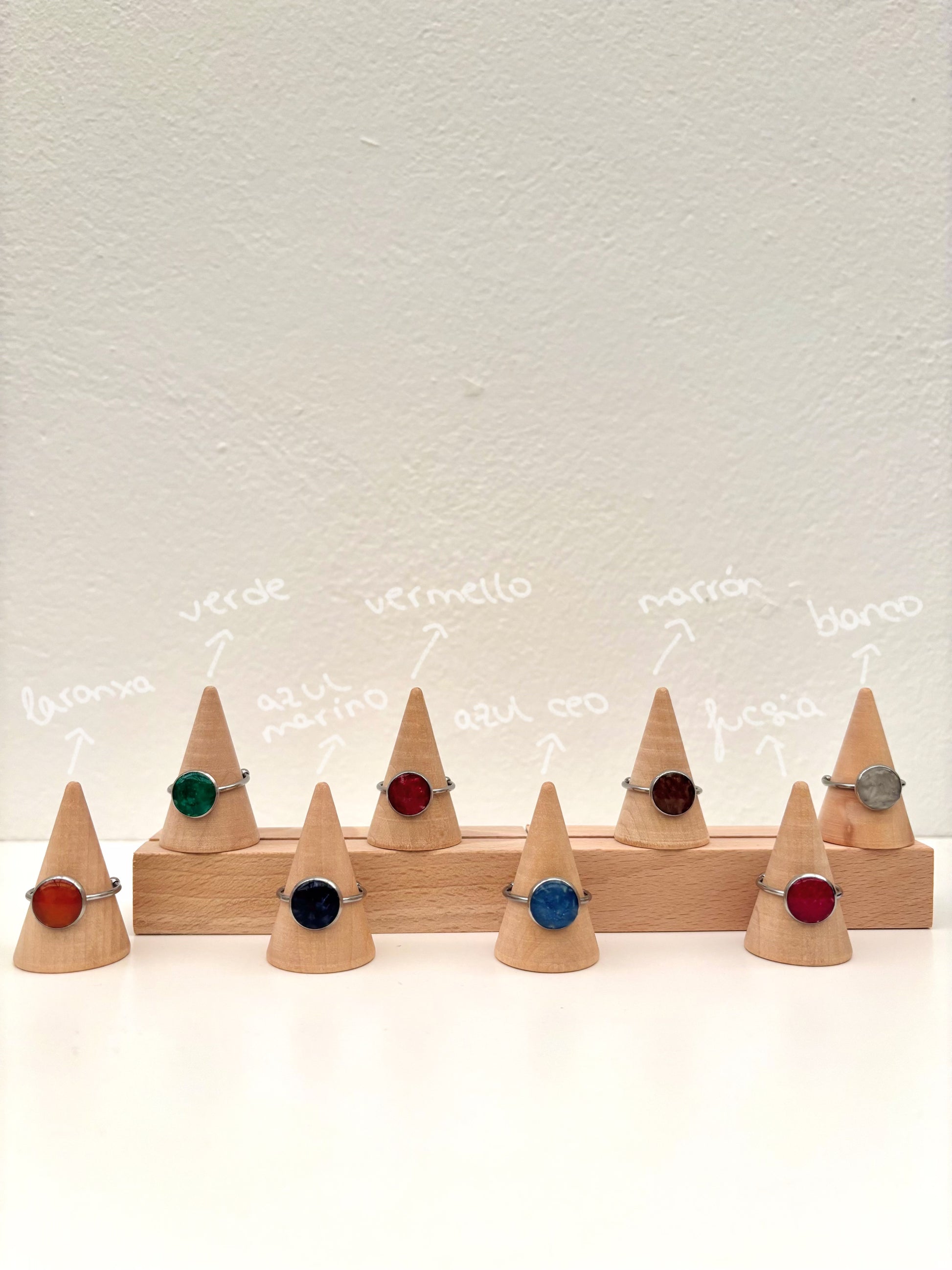 Aneis fabricados a partir de materiais téxtis sobrantes, dándolles así unha segunda vida.
