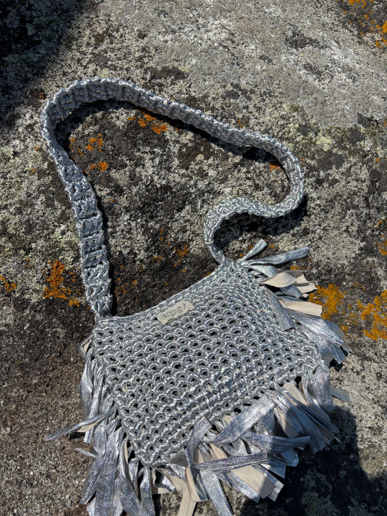 Medidas: bolso 25 cm x 18cm, asa 94 cm, flecos 10 cm