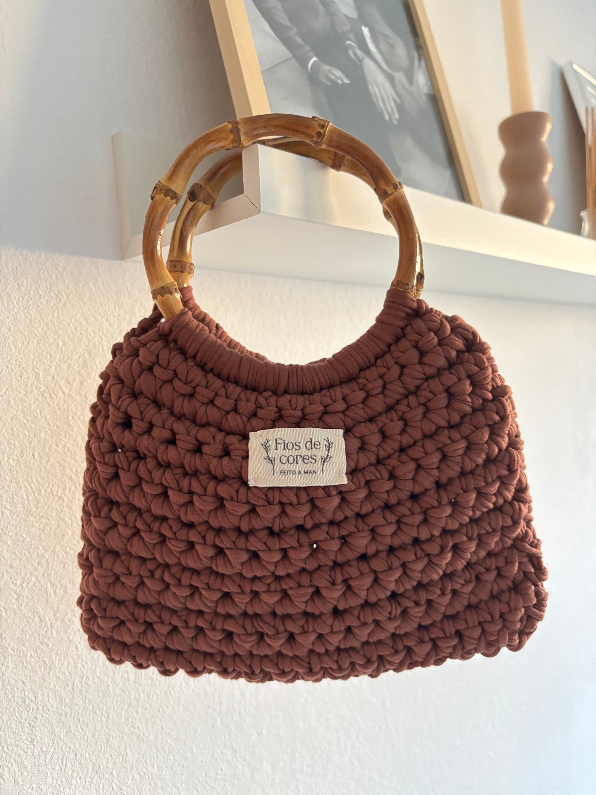 Medidas: bolso 22 cm x 14 cm, asas 10 cm de diámetro.