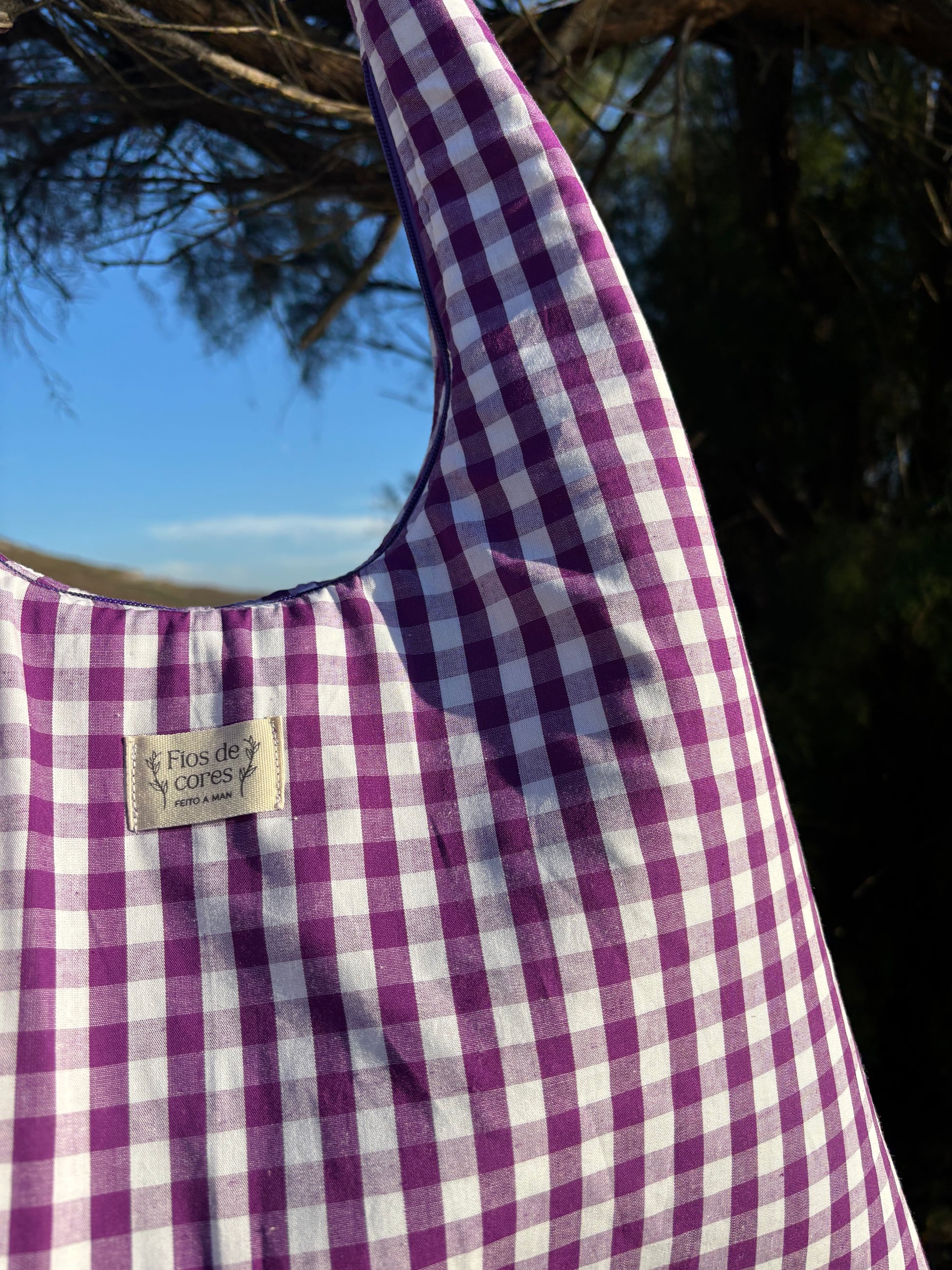 Bolsa feita a man de telas con diferentes motivos e estampados.