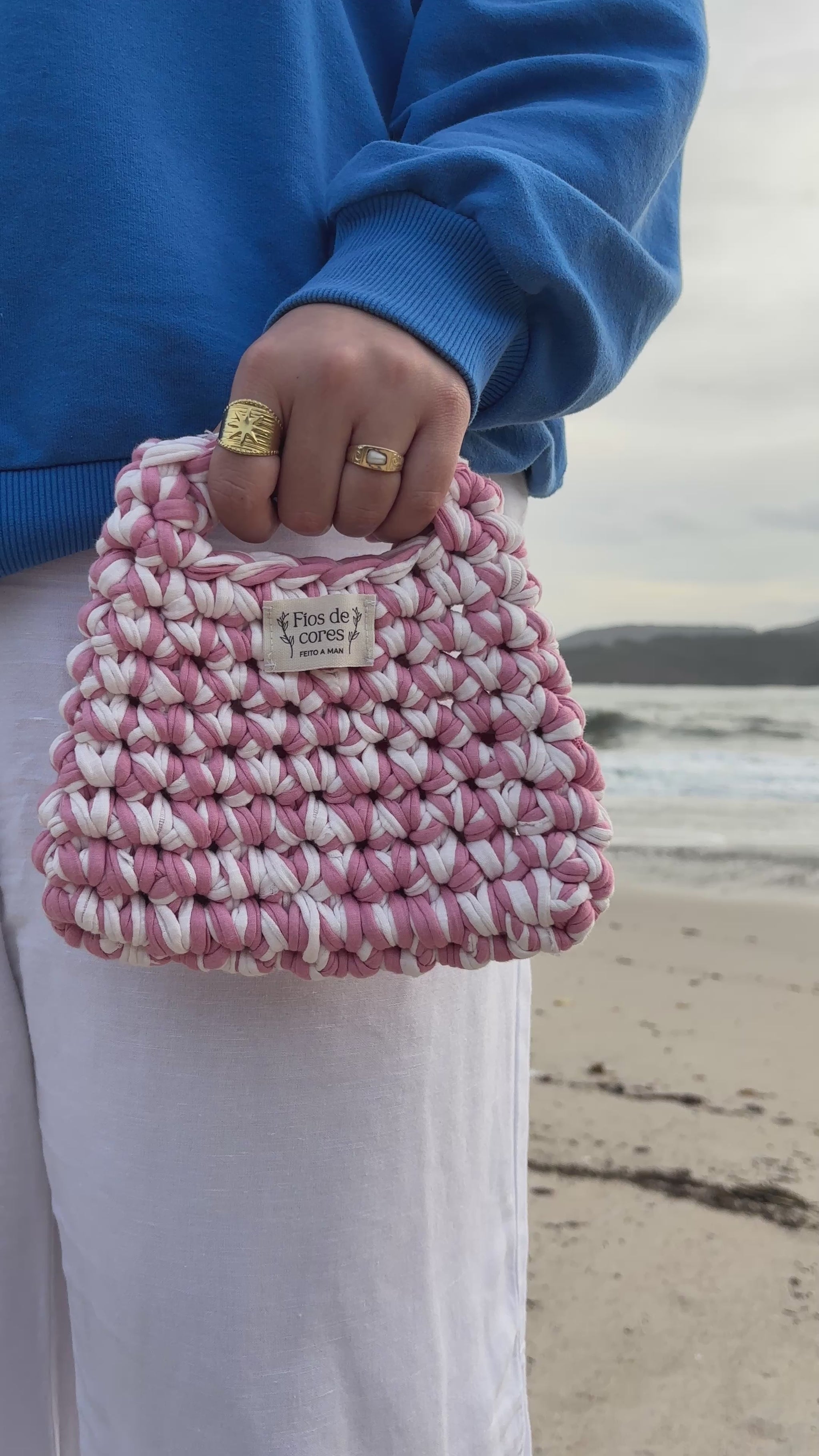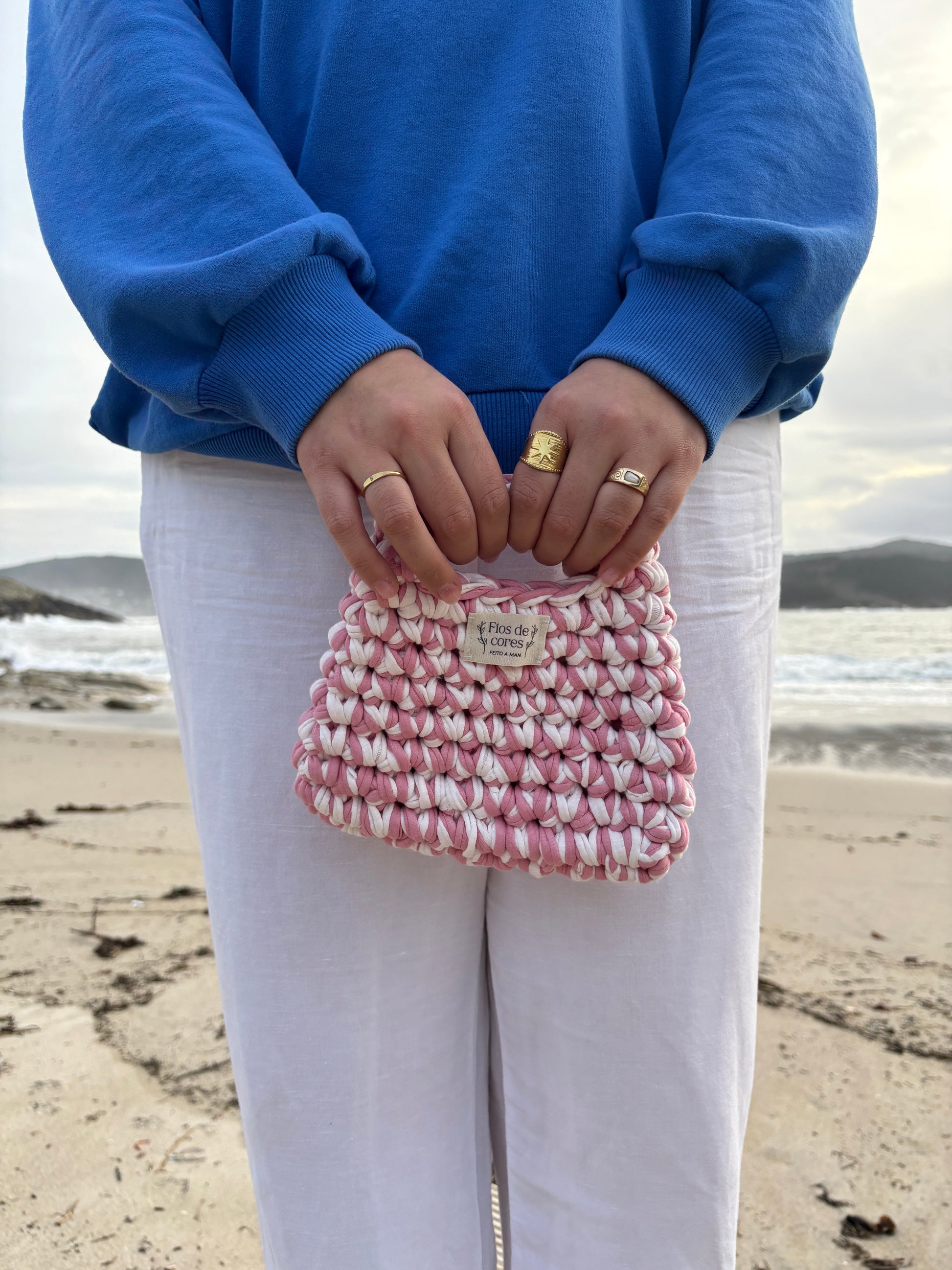 Bolso feito a man de trapillo 100% reciclado.