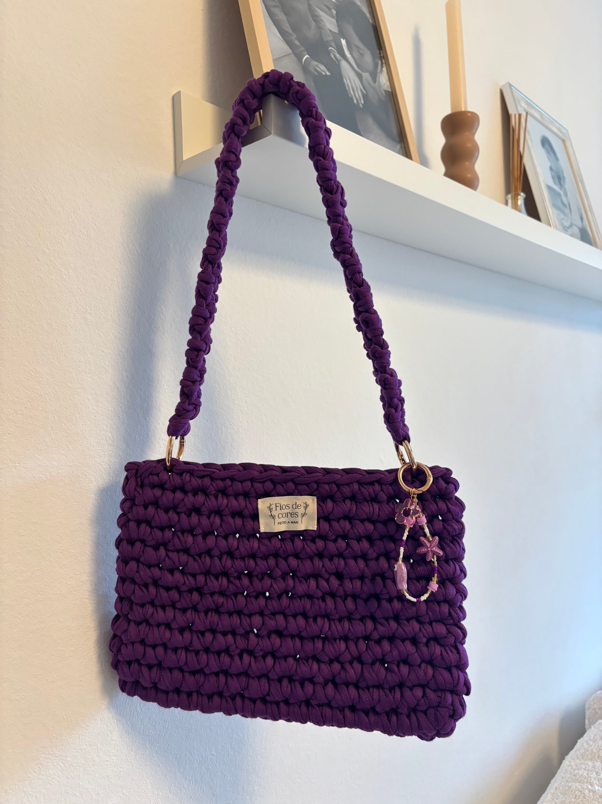 Bolso feito a man de trapillo 100% reciclado. Todos inclúen bag charms de @farfallajoyas_ feitos a man a xogo coa cor do bolso.