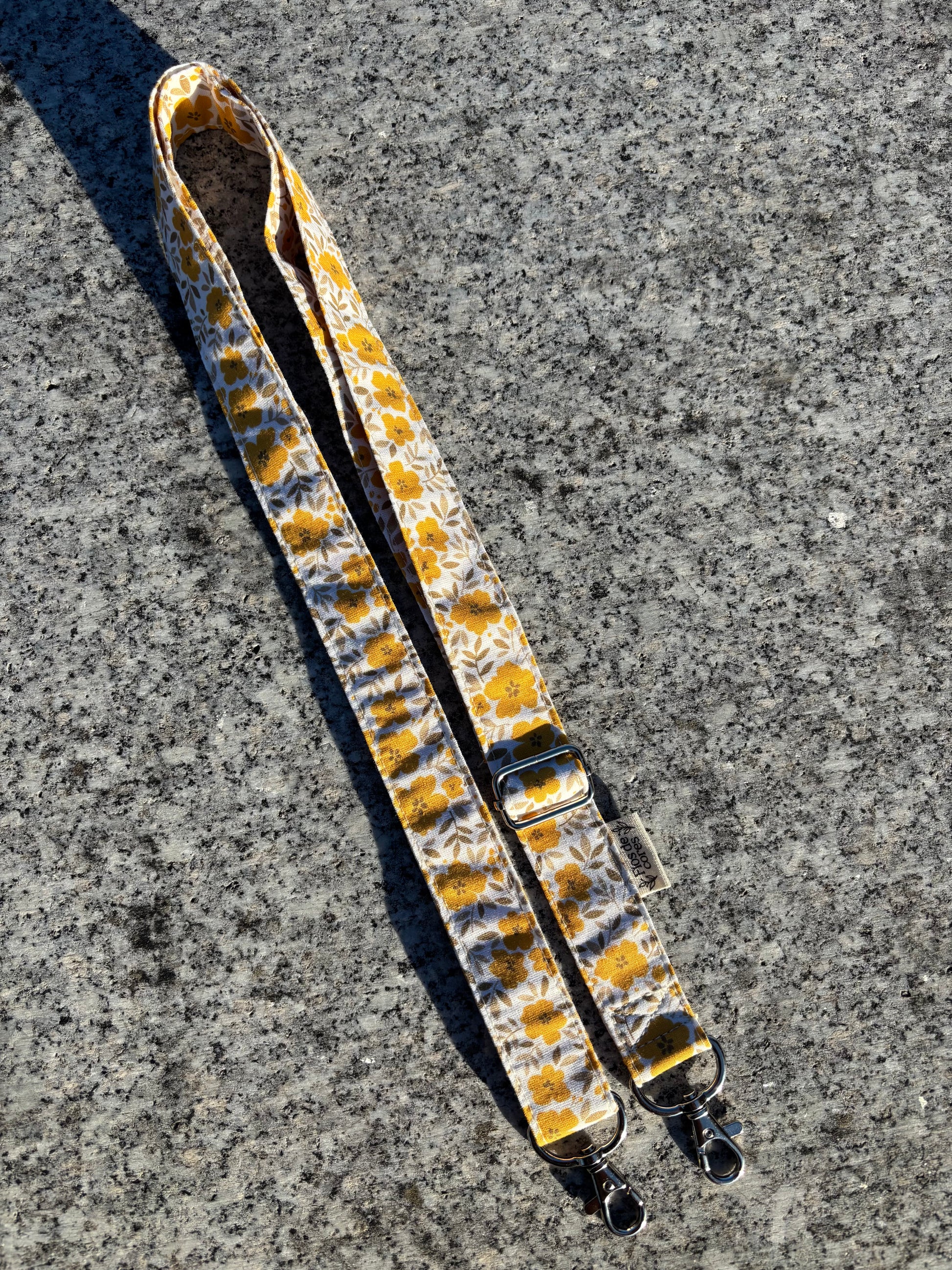Colgante axustable feito a man de telas con diferentes motivos e estampados.