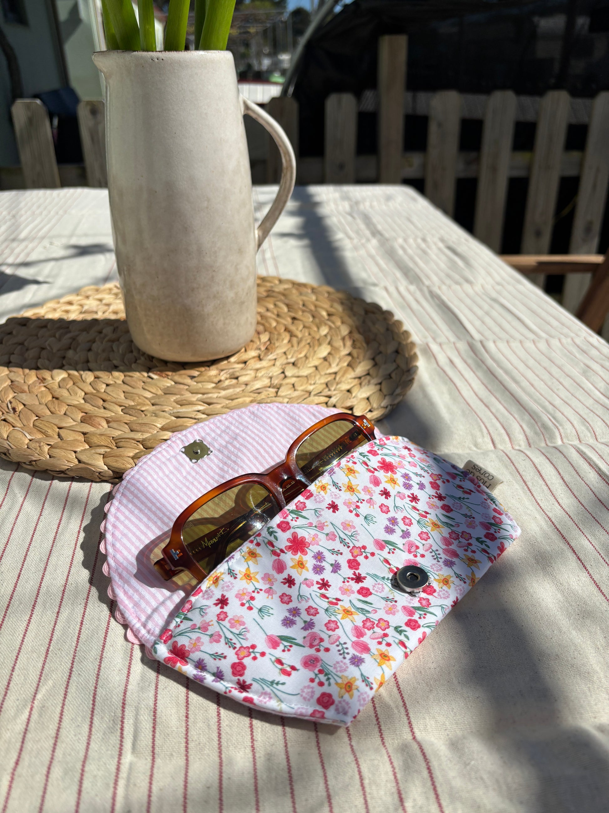 Funda para gafas feita a man de telas con diferentes motivos e estampados. Ao escoller a combinación, a que irá por fora será a tela da esquerda, e por dentro a da dereita. Son acolchadas para protexer totalmente as túas gafas! Cerran con broche magnético.