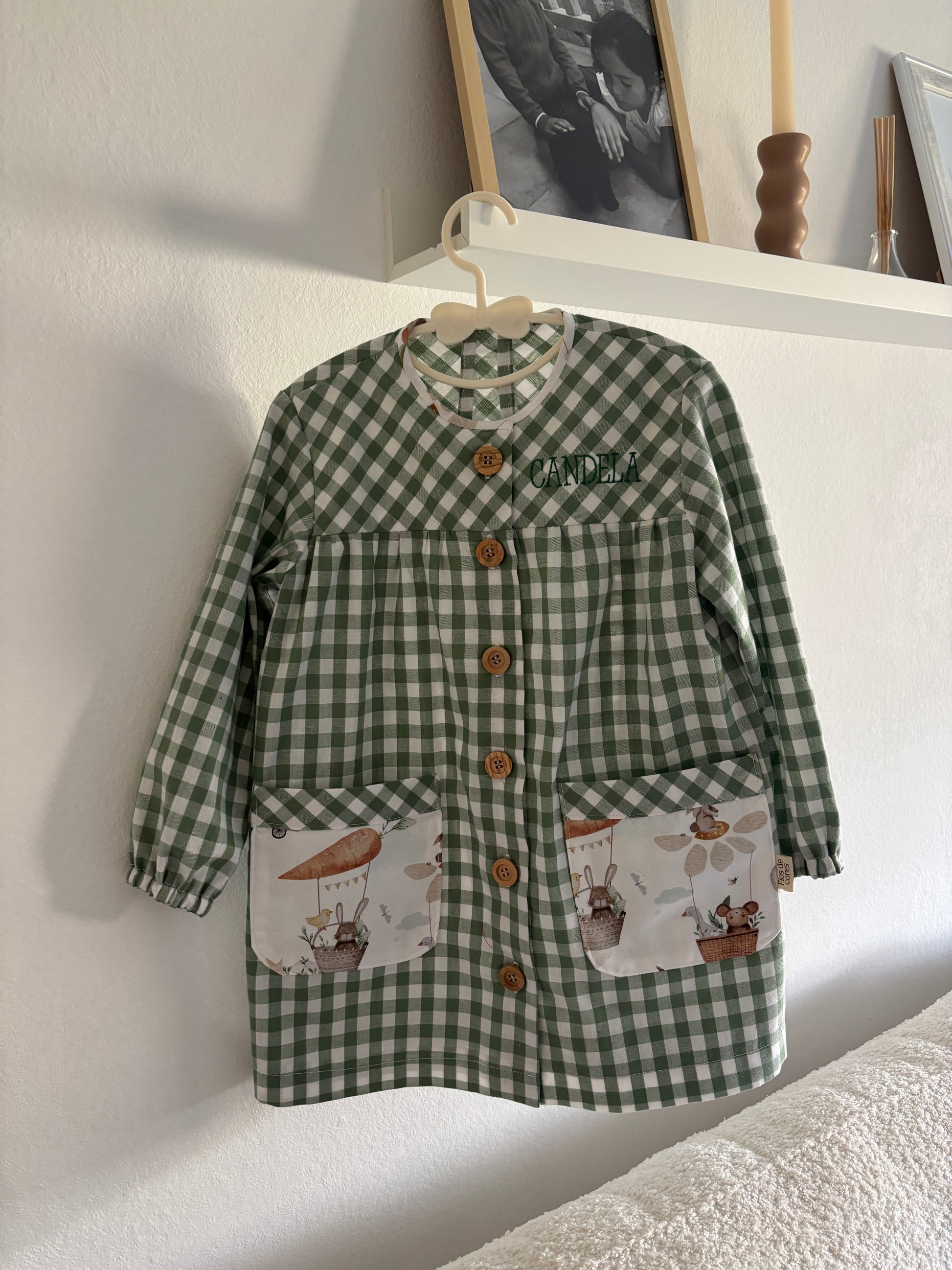 Ao escoller a combinación, o mandilón será confeccionado coa tela da esquerda, e os bolsillos serán da tela da dereita (tal e como se ve nas fotos)