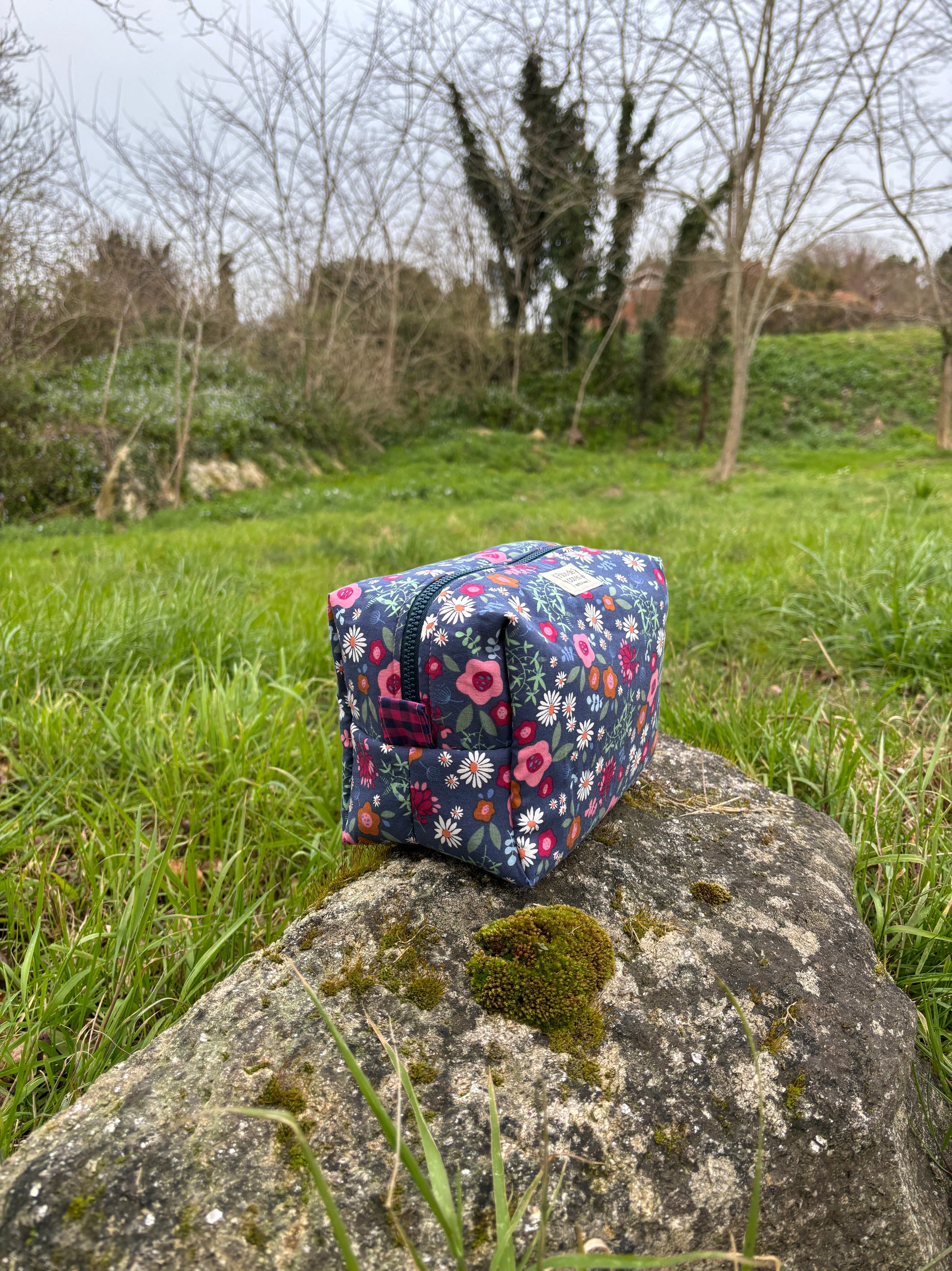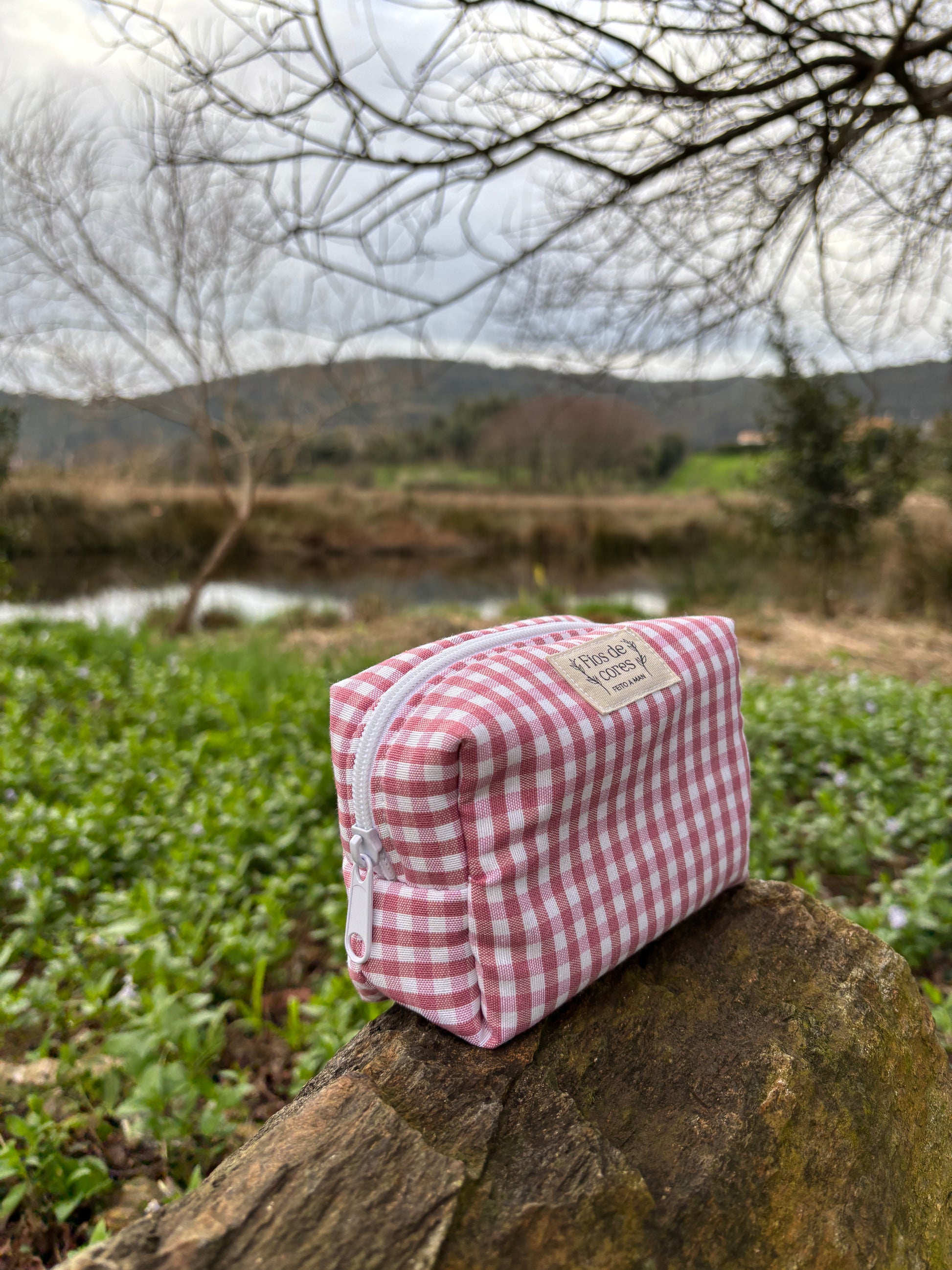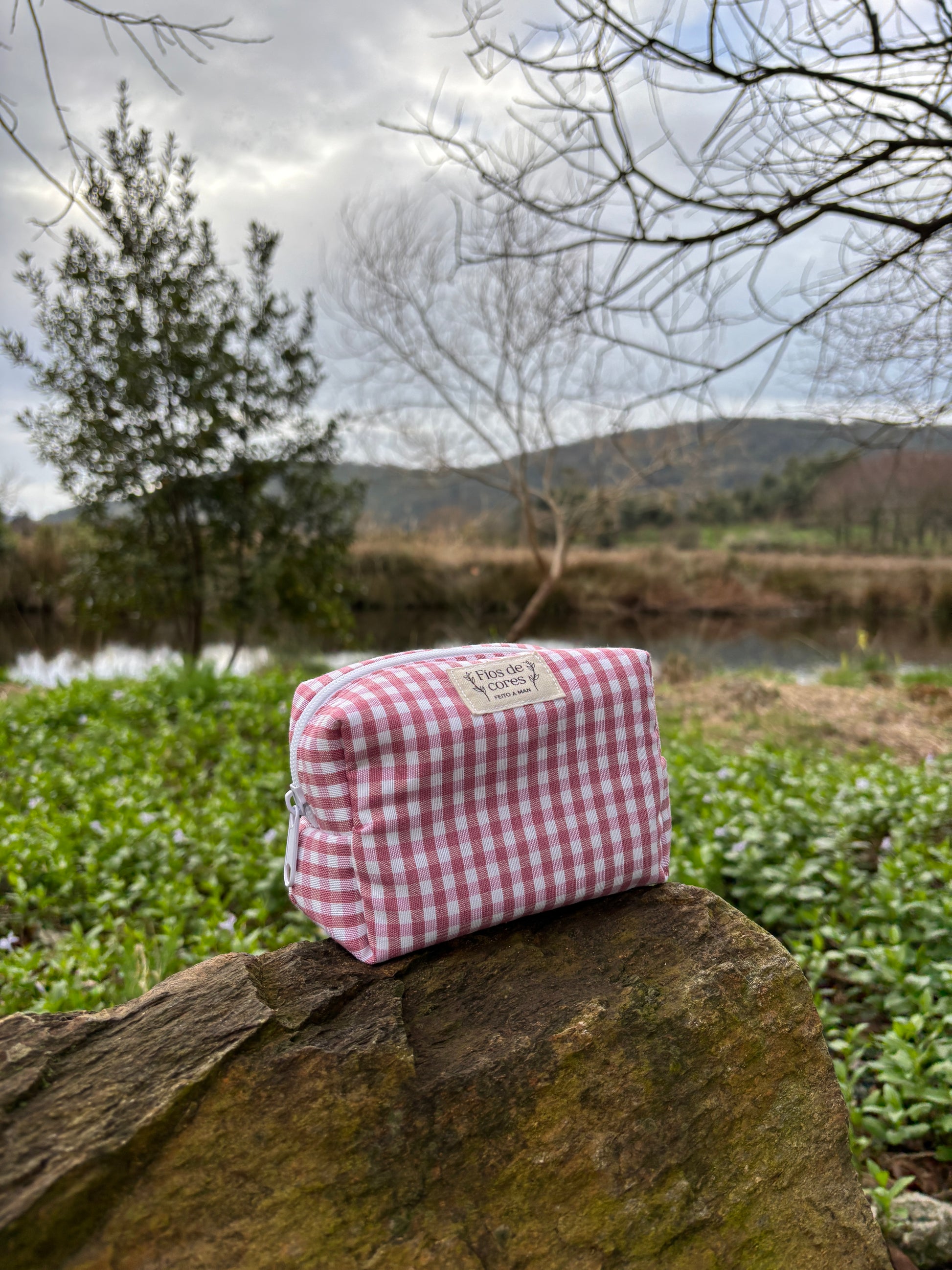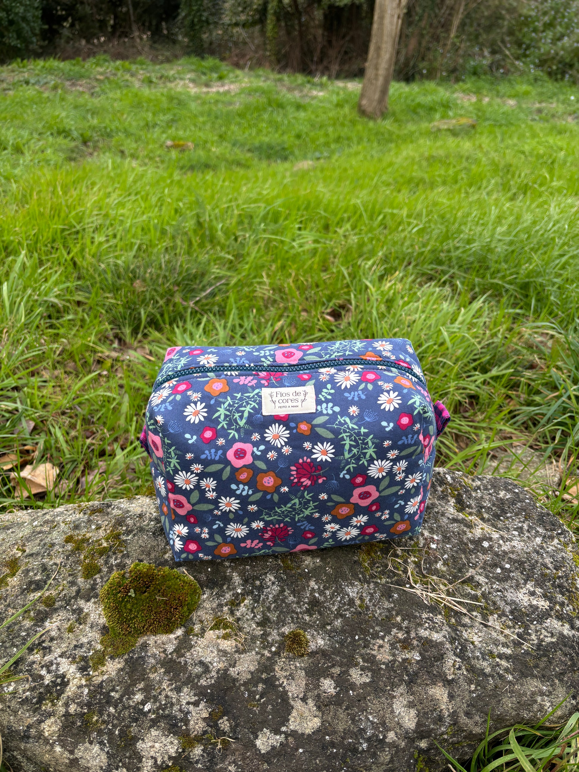 Neceser feito a man de telas con diferentes motivos e estampados. O interior ven forrado cunha cor neutra (blanco, beige...) ou a xogo coa escollida.