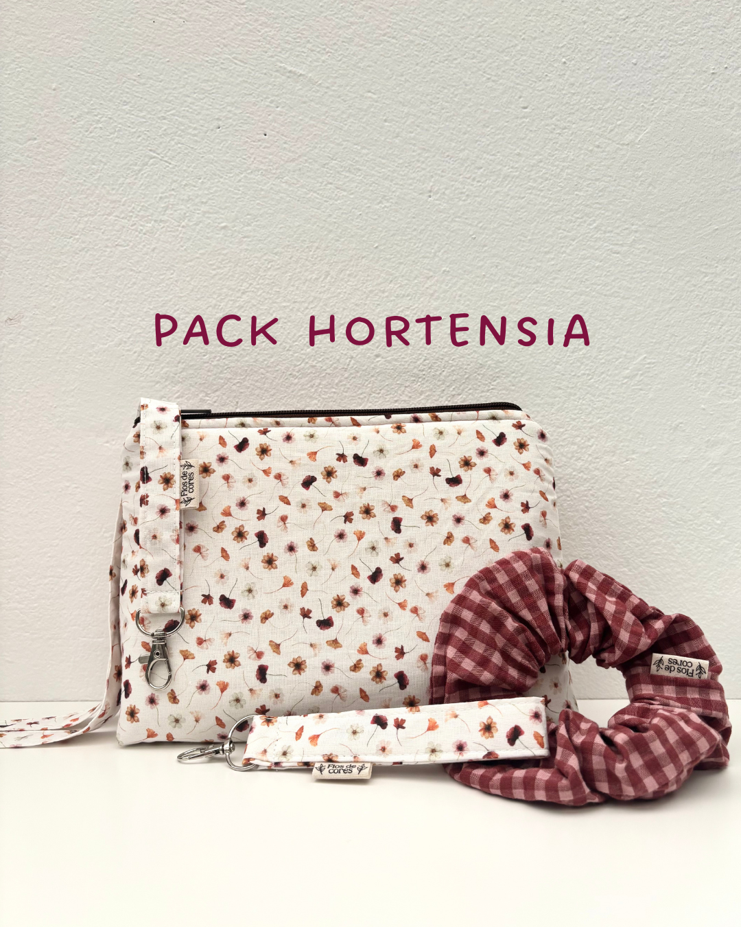 Pack hortensia: neceser trapecio + coletero + chaveiro + colgante