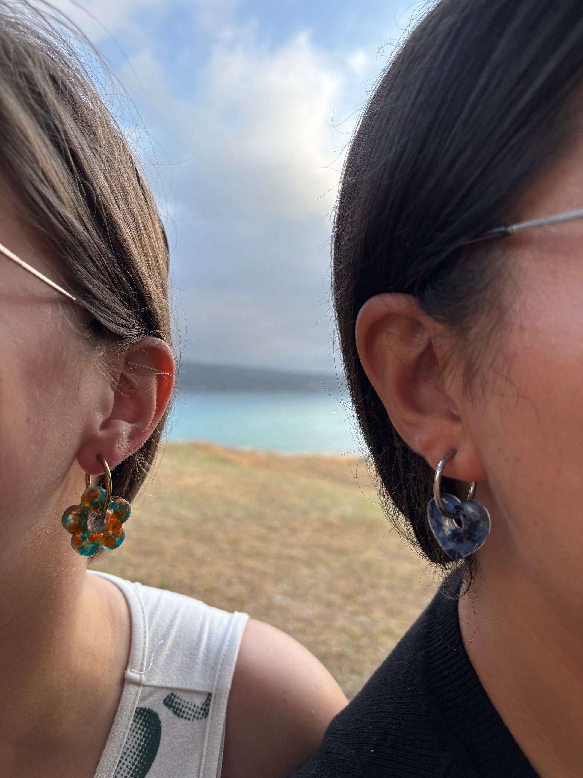 Pendentes fabricados a partir de materiais téxtis sobrantes, dándolles así unha segunda vida.