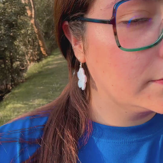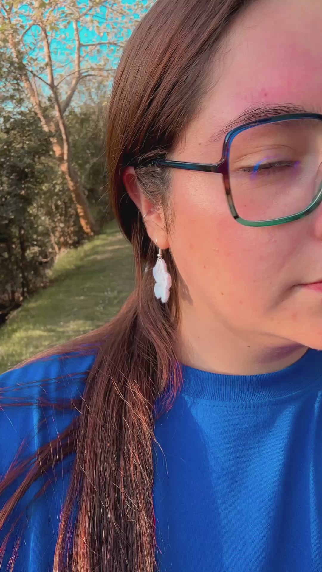 Pendentes feitos a man con fío 100% de algodón. Son de aceiro inoxidable e hipoalerxénico.